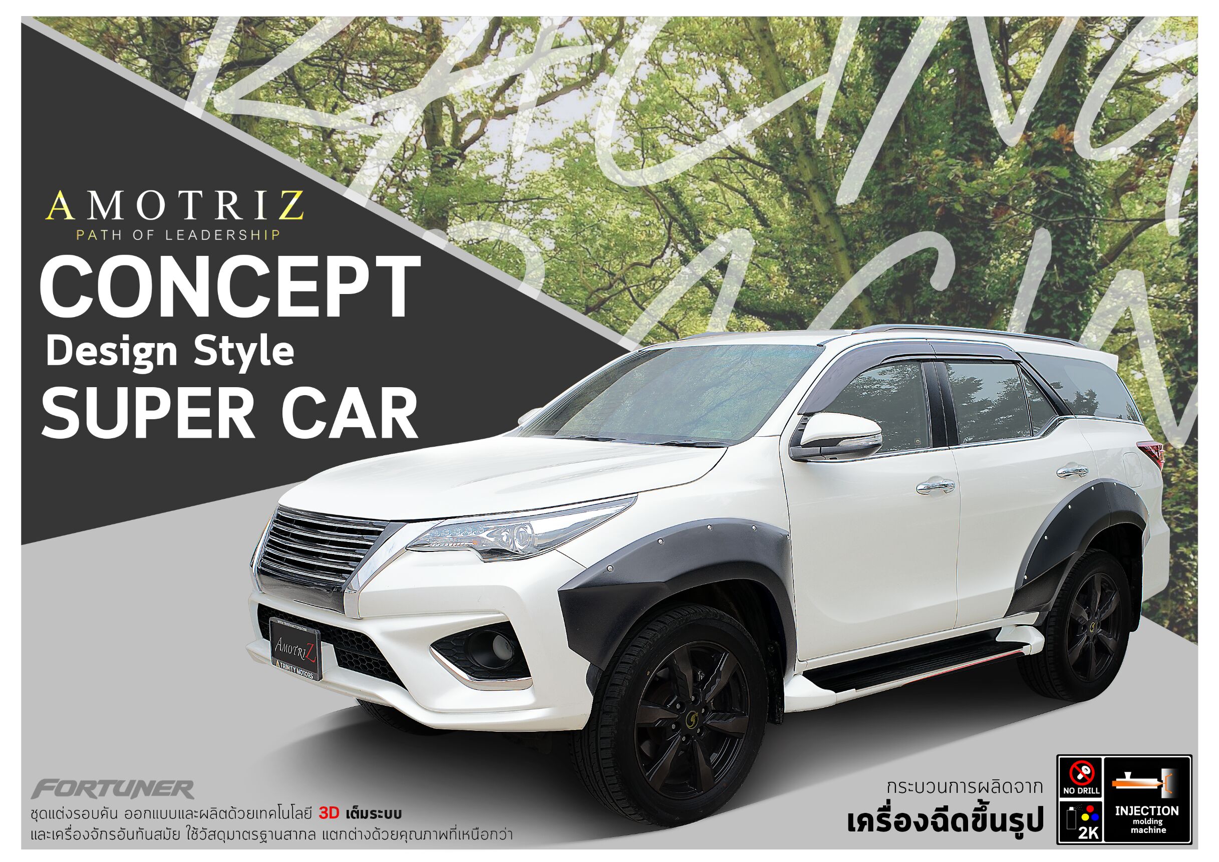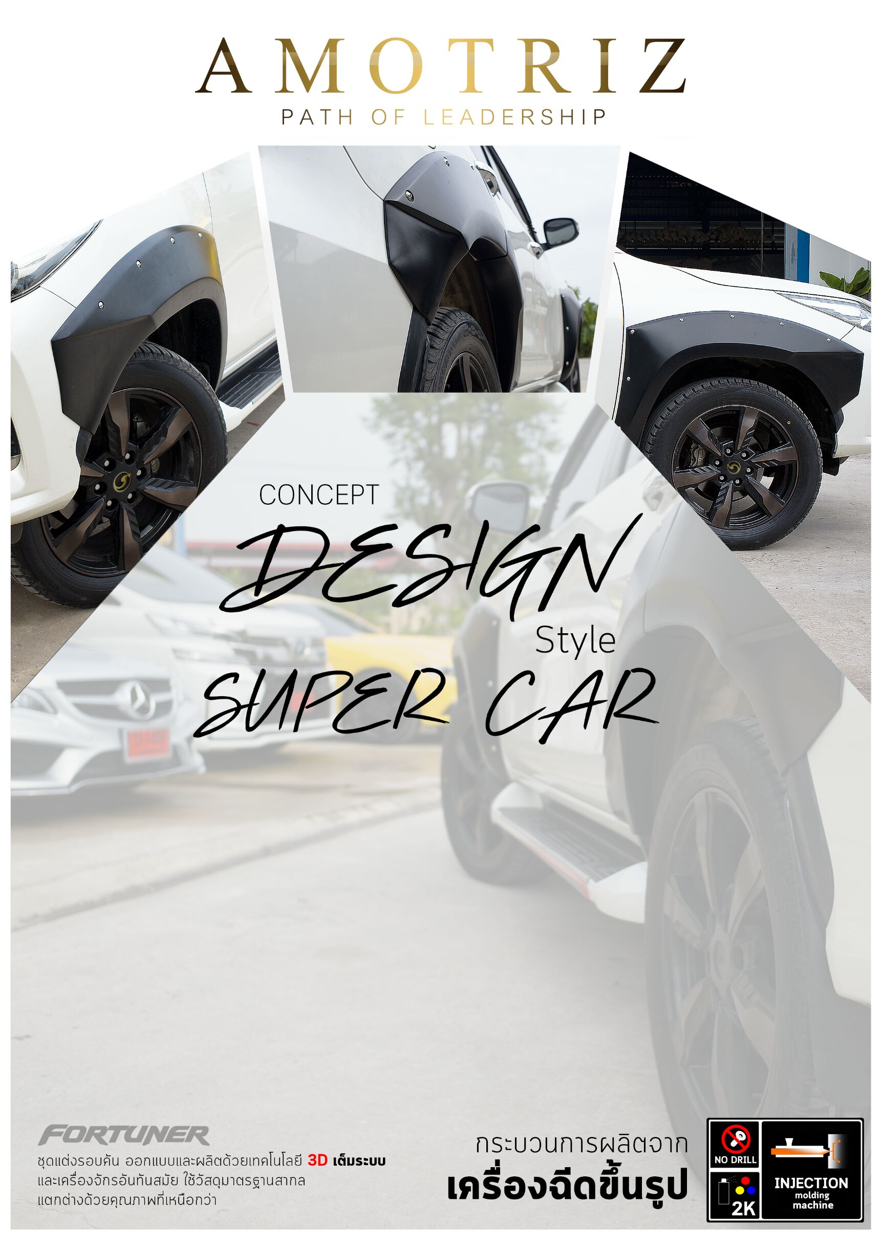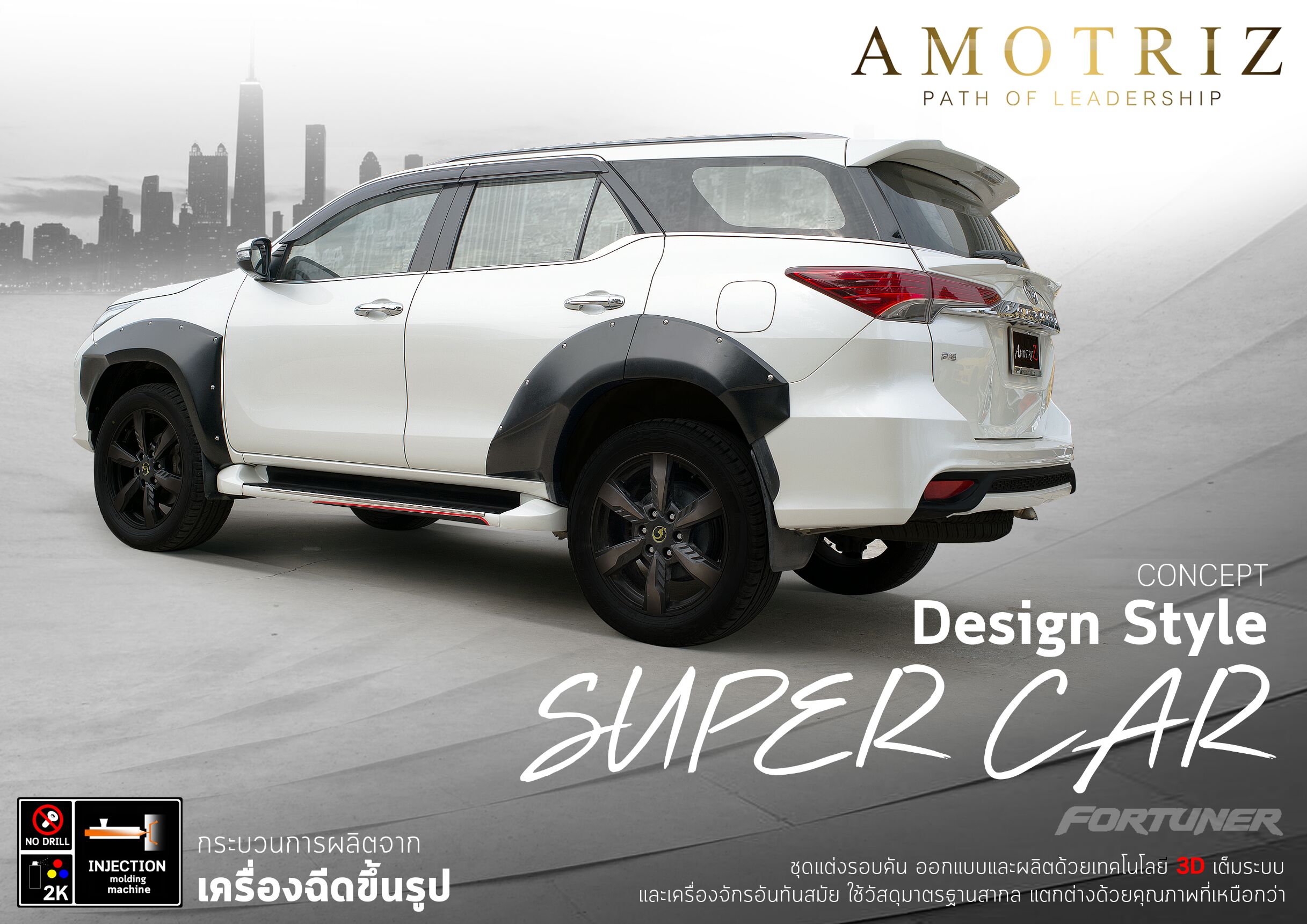 – คิ้วล้อ Toyota Fortuner 2015 ทรง Amotriz Super Car ผลิตจาก พลาสติก ABS เกรดพิเศษสำหรับอุตสาหกรรมยานยนต์ มีน้ำหนักเบา ความทนทานสูง สามารถยืดหยุ่นได้ไม่แตกหักง่าย