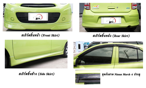 – ชุดแต่งรอบคัน Nissan March ทรง V.2 ผลิตจาก พลาสติก ABS เกรด A