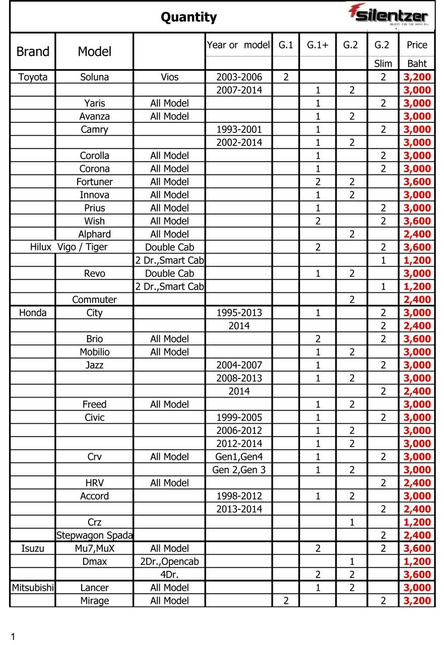 ** สำหรับรถบางรุ่น อาจจะใช้ Silentzer G2 มากกว่า 2 กล่อง ***